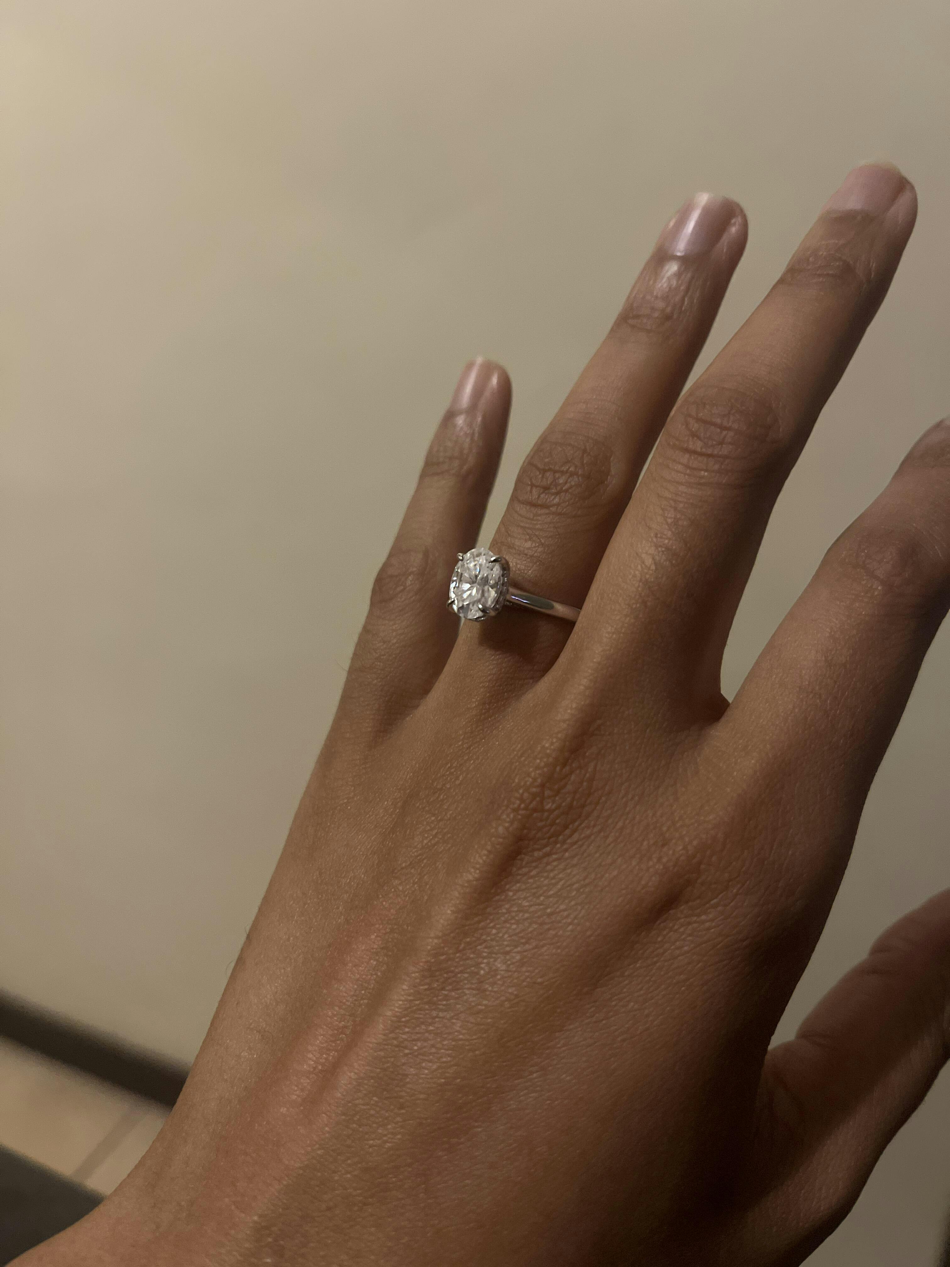 The Selene ring showcases a captivating 9×7mm (2ct) oval-cut D-colour VVS1 moissanite, prized for its exceptional brilliance and fire. Expertly crafted in solid 925 sterling silver and finished with a luxurious white rhodium plating, this timeless design features a classic four-prong setting that allows the stone to shine from every angle. Hypoallergenic, nickel-free, and tarnish-resistant, it offers lasting beauty and comfort for everyday wear or special occasions. Certified for quality and available with customisation options in sterling silver or solid 9K, 14K, or 18K white gold, the Selene makes a stunning choice for an engagement, wedding, or meaningful gift.